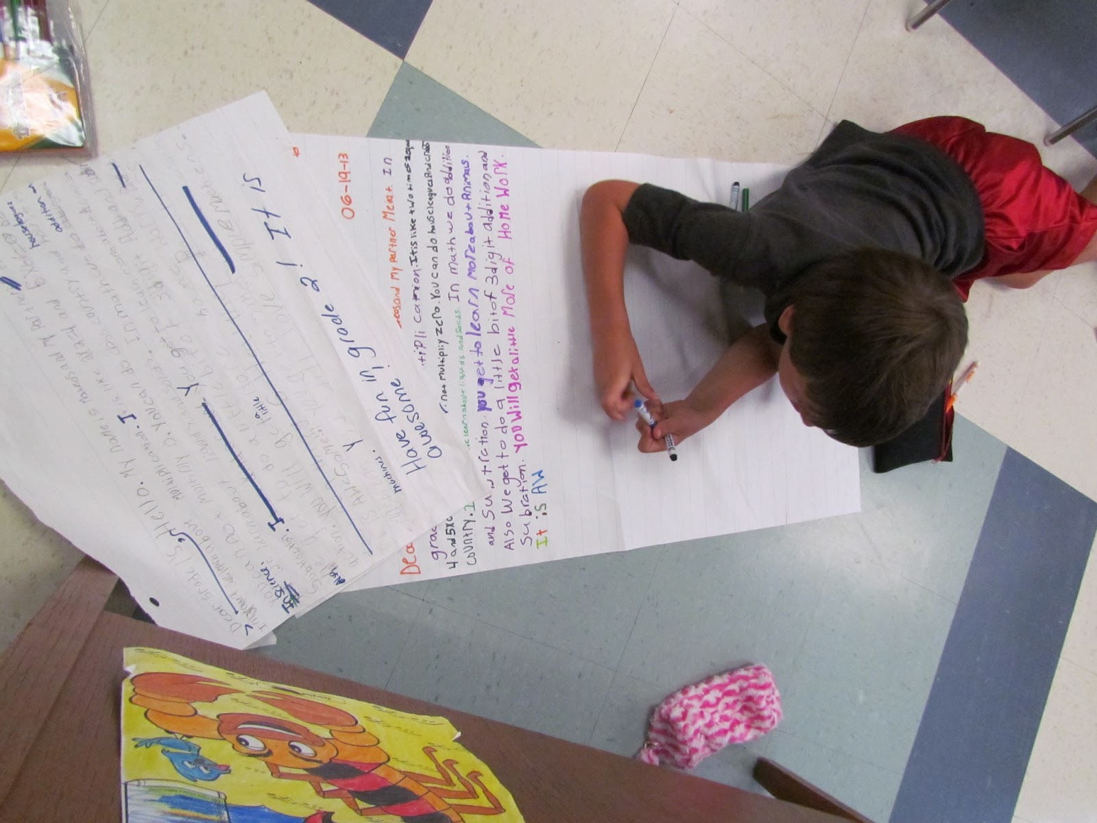 We also wrote letters to next years grade one and two students. We are delivering them this week. Simple, yet a wonderful writing/memory activity.